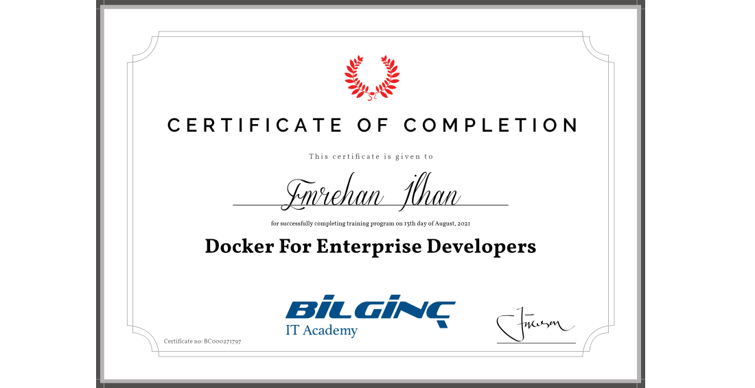 Docker For Enterprise Developers Training Completion Certificate