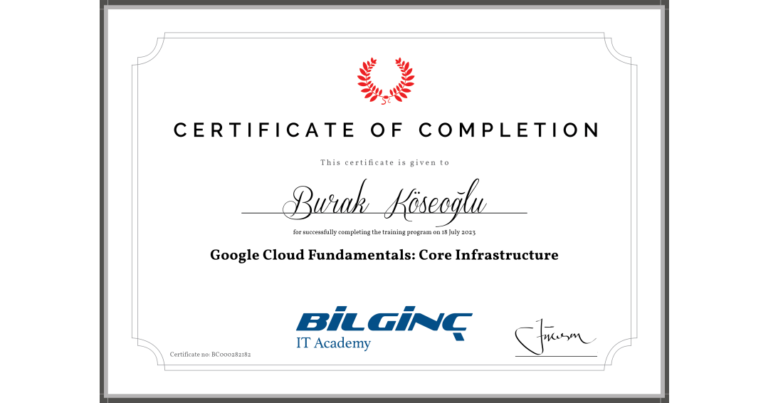 Google Cloud Fundamentals: Core Infrastructure Training Completion Certificate
