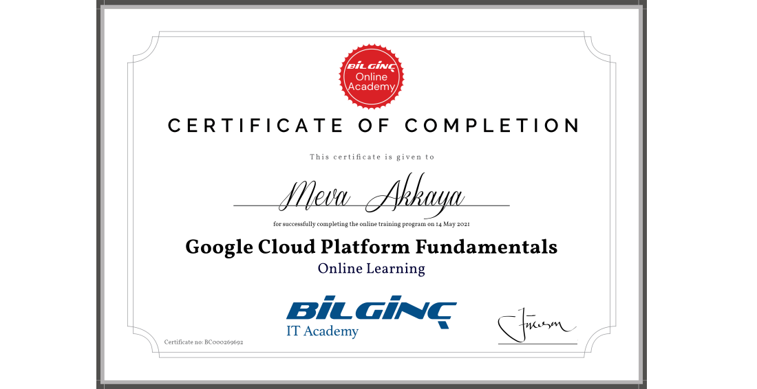 Google Cloud Fundamentals: Core Infrastructure Training Completion Certificate