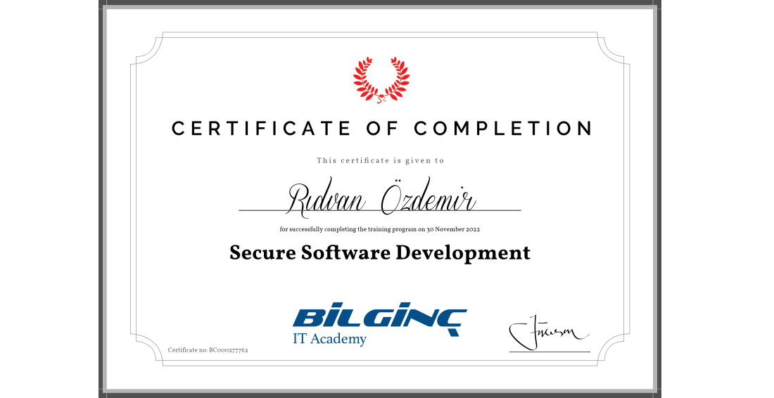 Secure Software Development Training Completion Certificate