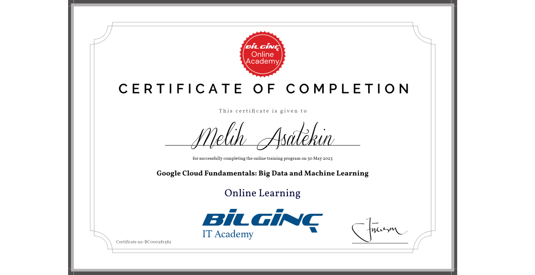 Google Cloud Big Data and Machine Learning Fundamentals Training Completion Certificate