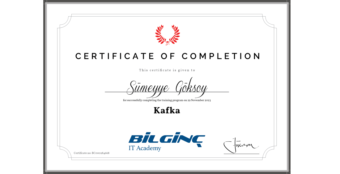 Kafka Training Completion Certificate