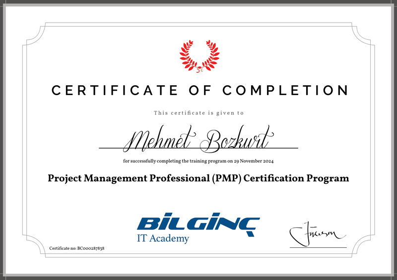 PMI® Authorised PMP® Exam Preparation Training Completion Certificate