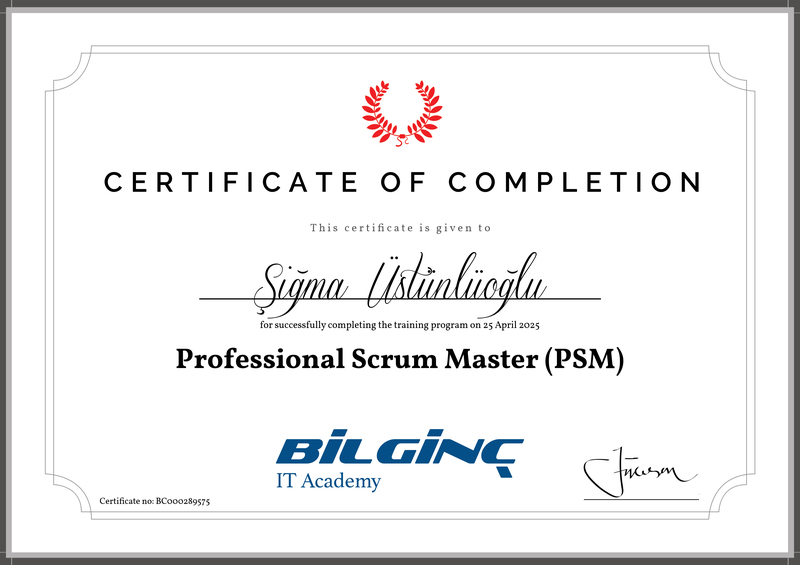 • Certificate Holder: ŞİĞMA ÜSTÜNLÜOĞLU