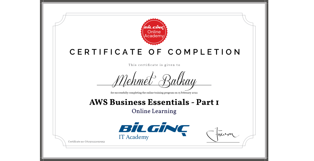 AWS Business Essentials - Part 1 Training Completion Certificate